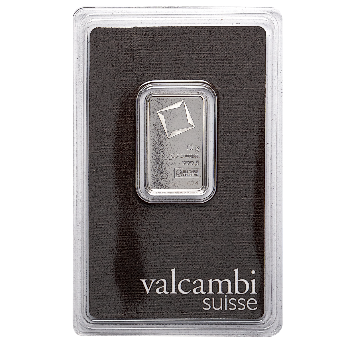 Grow your platinum holdings with these sleek 10 gram bullion bars from the respected Swiss precious metals refiner Valcambi.