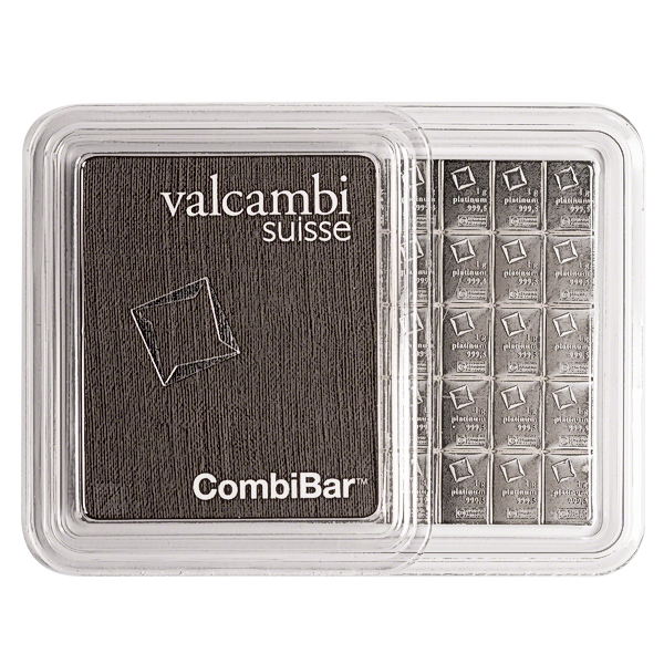 The 50 gram Platinum CombiBar from Swiss refiner Valcambi is a unique investment Platinum bar that can be divided into 50 x 1 gram Platinum bars. Valcambi is one of the the largest precious metals refiner in Switzerland, and its bullion products are highly respected throughout the world for their Swiss craftsmanship and guarantee of quality. Each platinum bar is extruded and laminated in an assay card.