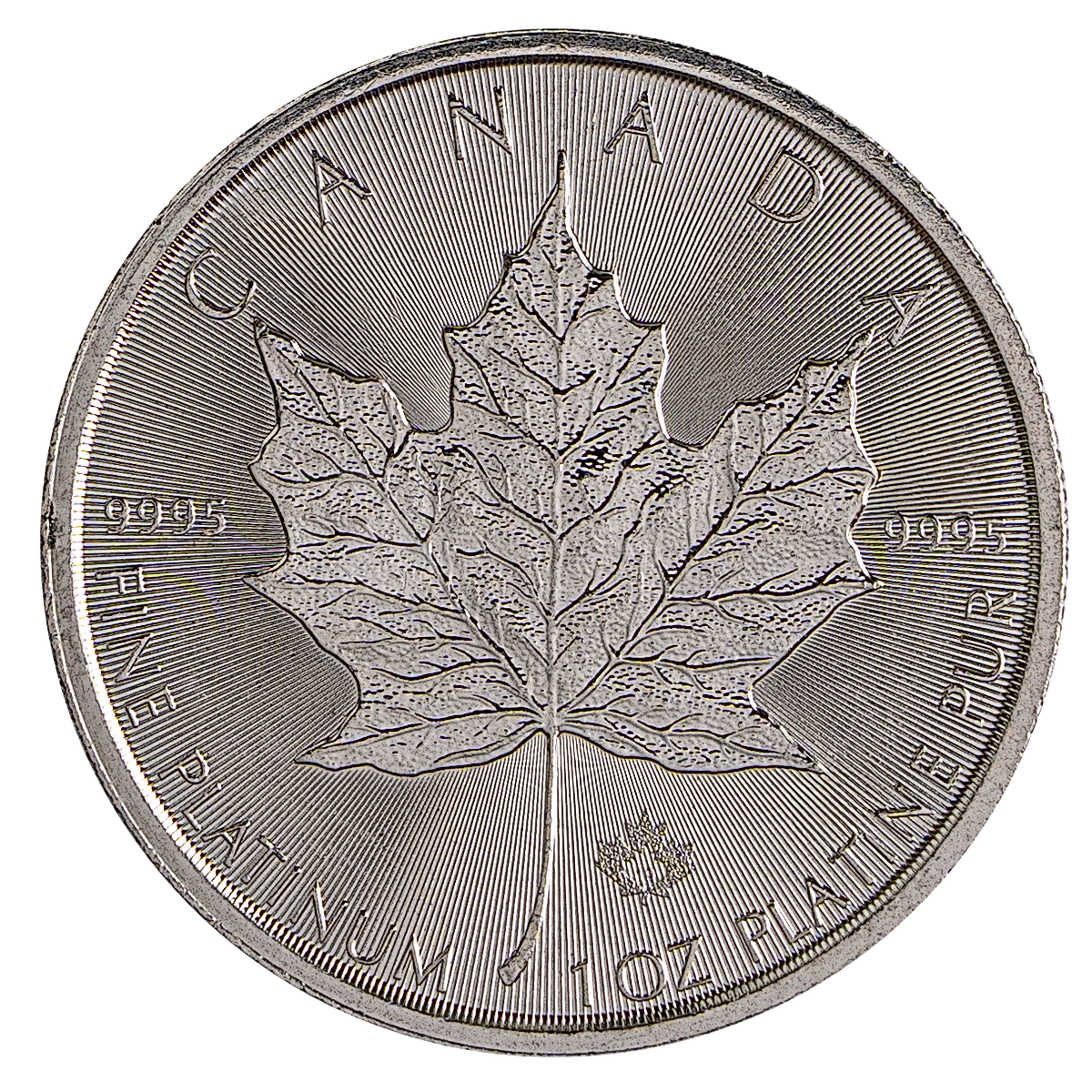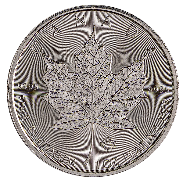 The platinum Maple Leaf is the official platinum bullion coin of Canada and has non-circulating legal tender status with a face value of 50 Canadian dollars.
