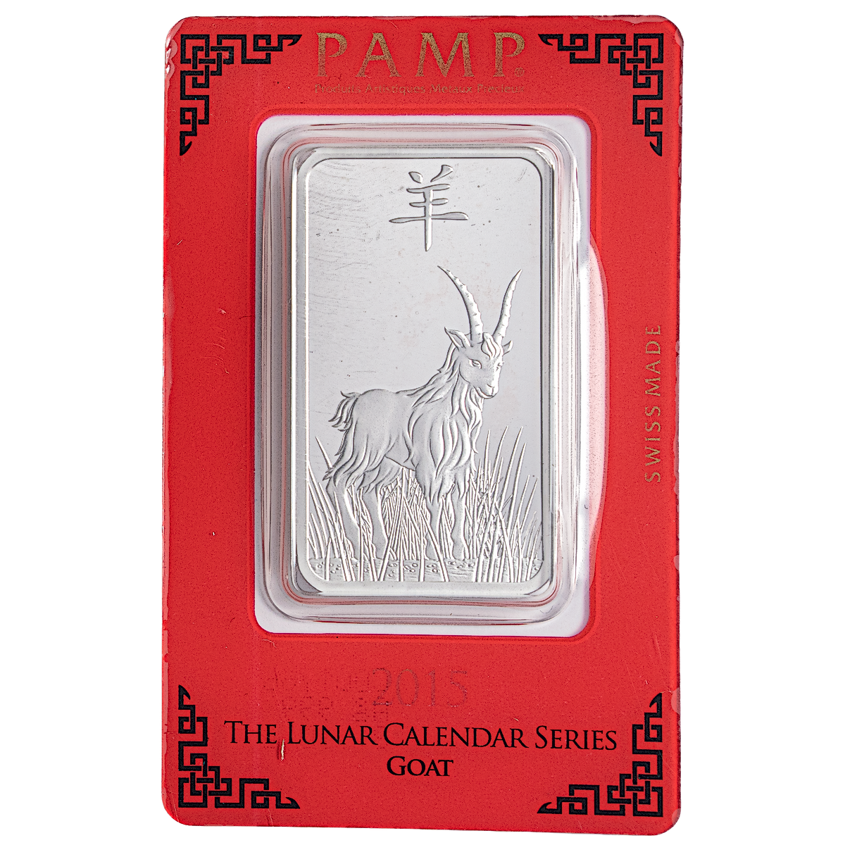 1 oz silver Lunar Year of the Goat bar minted by PAMP Suisse.