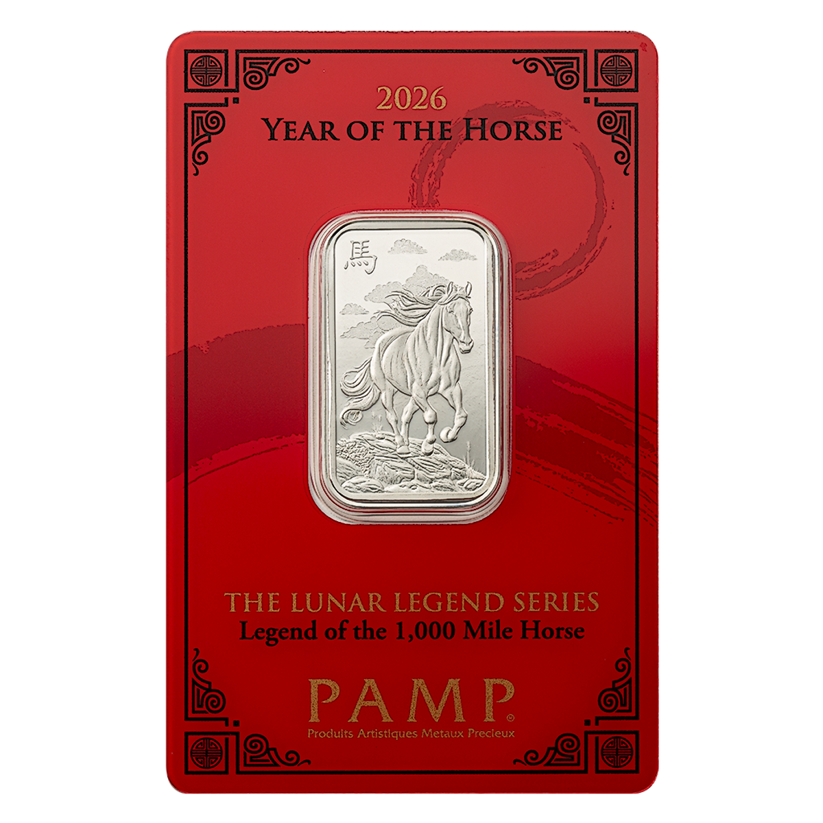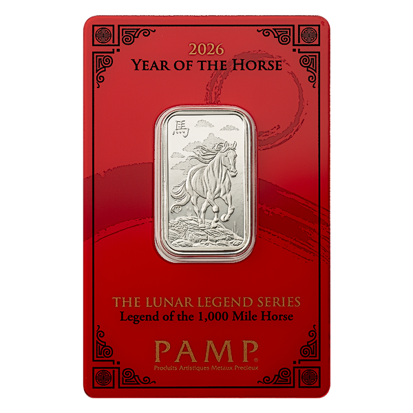 The 10 gram minted silver bar from the famous Swiss refinery PAMP is a great way to celebrate the 2026 Chinese Lunar 'Year of the Horse'.