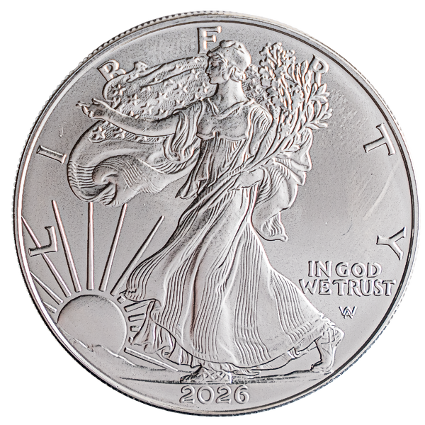 The 2026 1 oz American Silver Eagle bullion coin is a world-famous silver coin fabricated by the United States Mint in 99.9% pure silver.