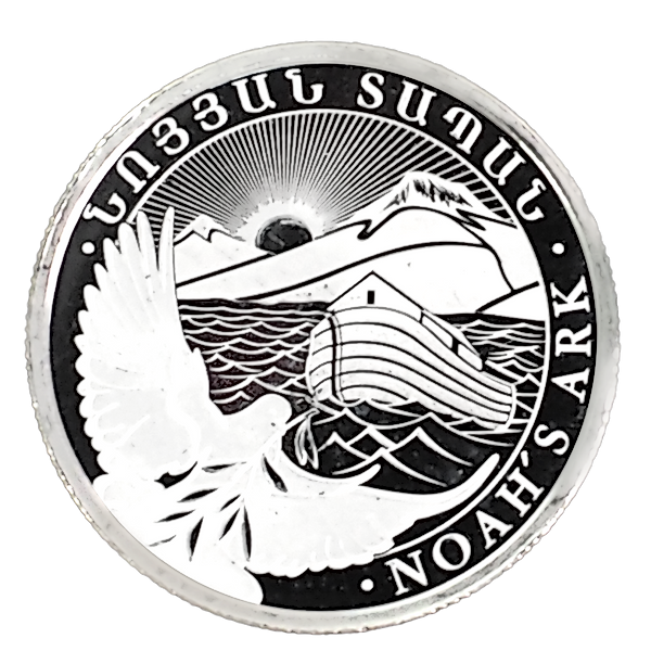 More unusual than the silver coins produced by national mints, this ¼ oz silver Noah’s Ark bullion coin is produced on behalf of the Republic of Armenia. It features imagery from the biblical Noah’s Ark legend with Mount Arafat in the background.