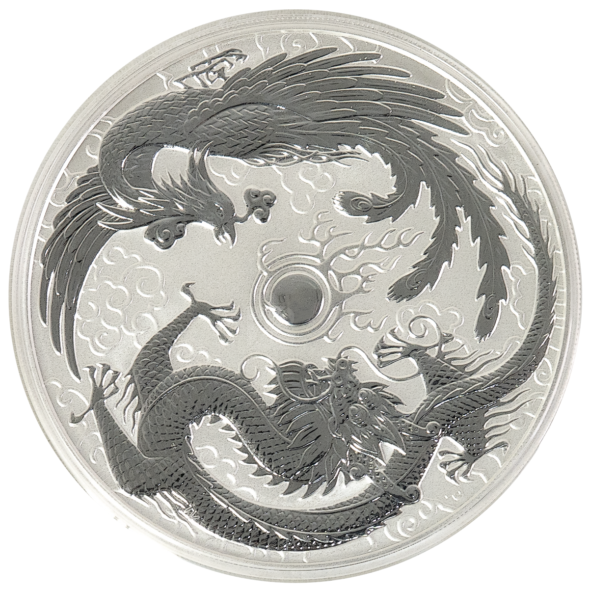 10 oz Dragon and Phoenix Silver coin minted by the Perth Mint.