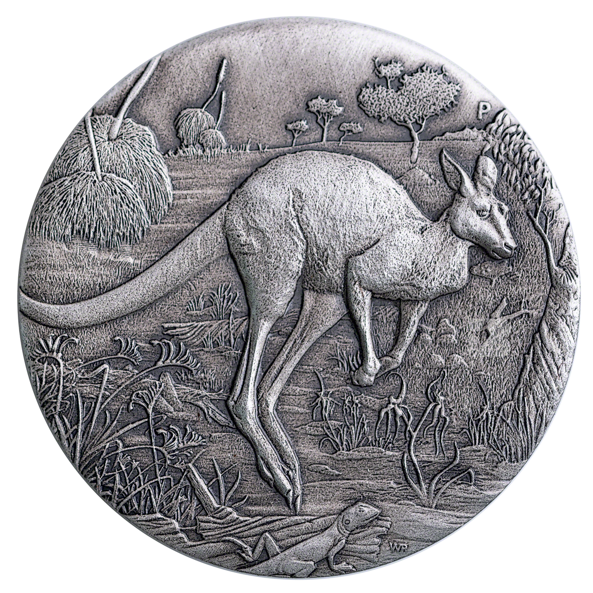 The reverse of the coin depicts a kangaroo hopping across the Outback. The design also includes The Perth Mint’s traditional ‘P’ mintmark.