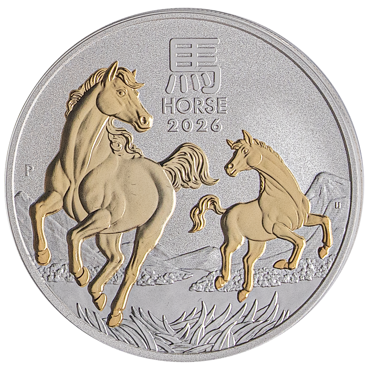 1 oz Silver Gilded Lunar Horse coin minted by the Perth Mint.