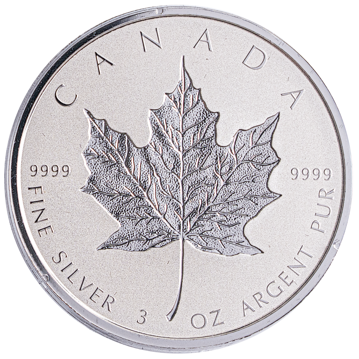 The reverse features the words “CANADA” and “FINE SILVER 3 OZ ARGENT PUR” as well as the purity standard of “9999”.