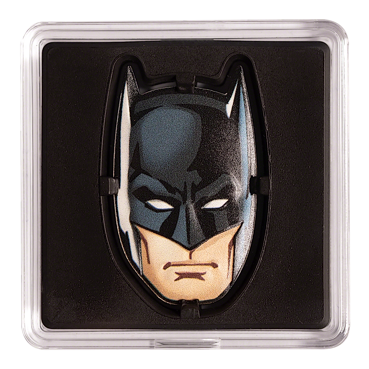 The first in the Faces of Gotham Coin Collection, this uniquely shaped 1oz pure silver coin replicates the “face” of Batman.