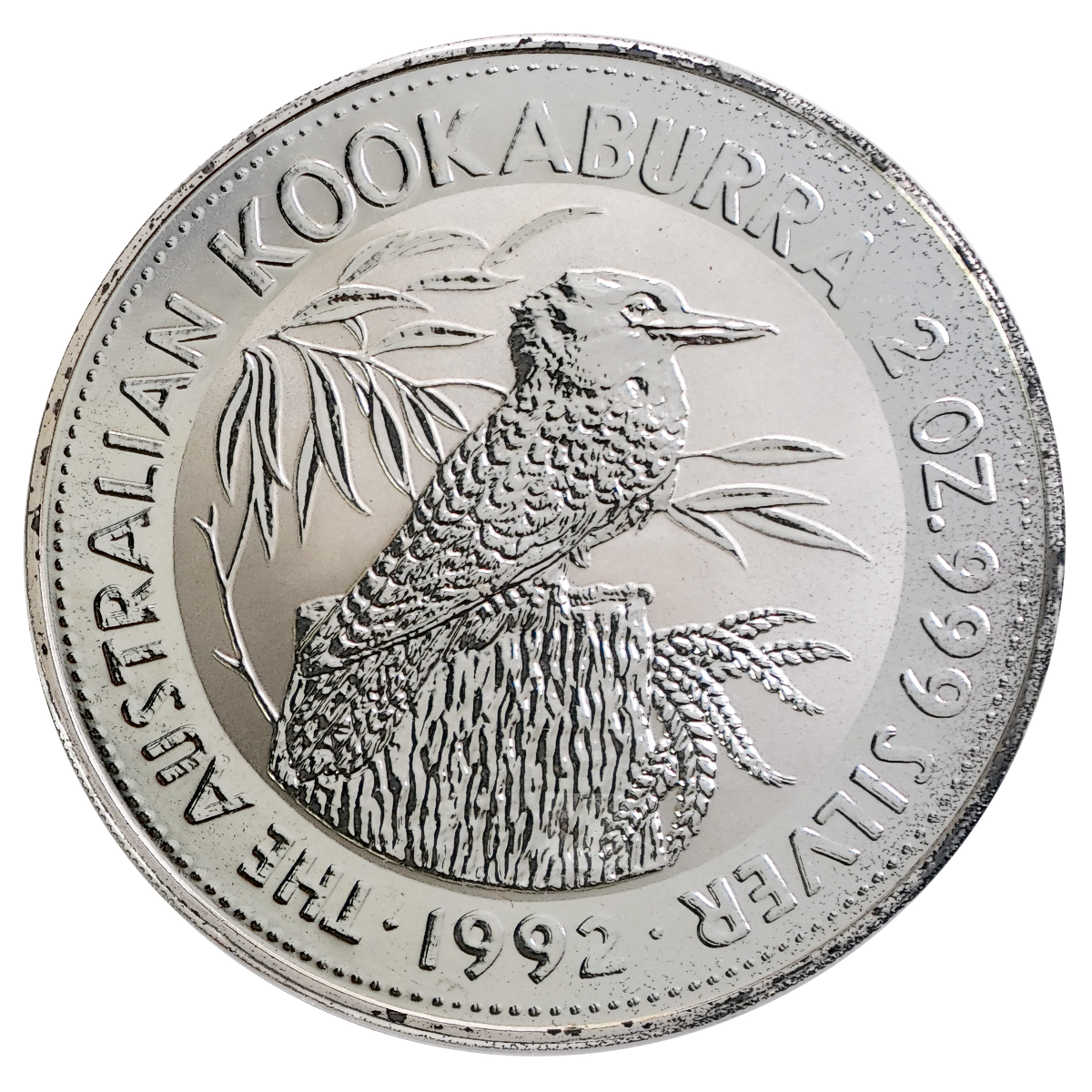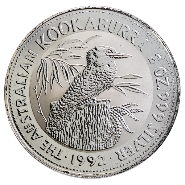 The Perth Mint launched the Silver Kookaburra series in 1990, and this 1992 coin is from the third year of the series. The image on the 2oz coin features a Kookaburra on a tree stump and is different to the 1oz coin image of that year.