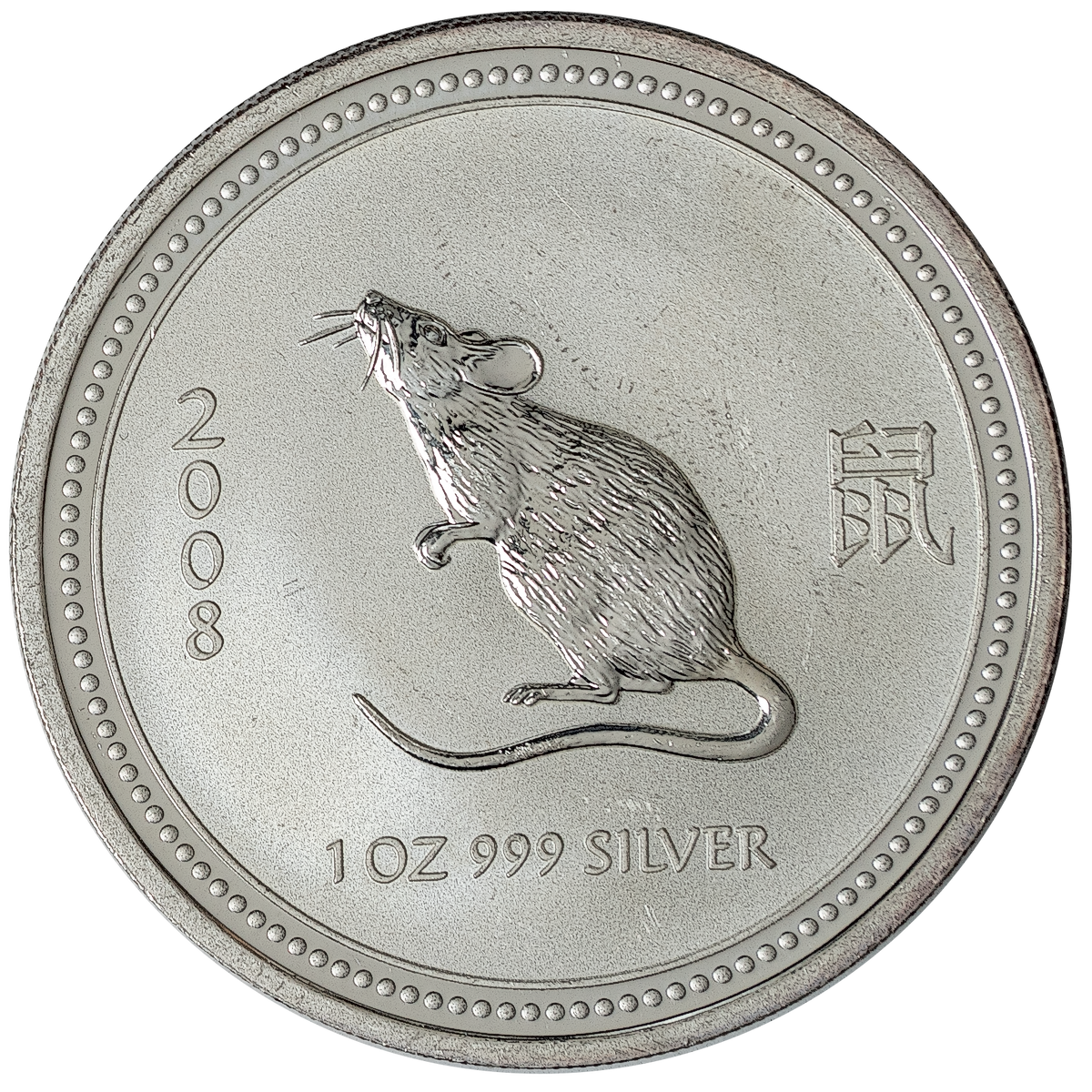 2008 1 oz Australian Lunar Series "Year of the Mouse" Silver Bullion Coin - Series 1