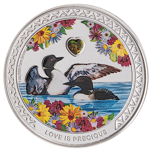 1 oz Silver Love is Precious "Great Northern Diver" coin produced by the New Zealand Mint.