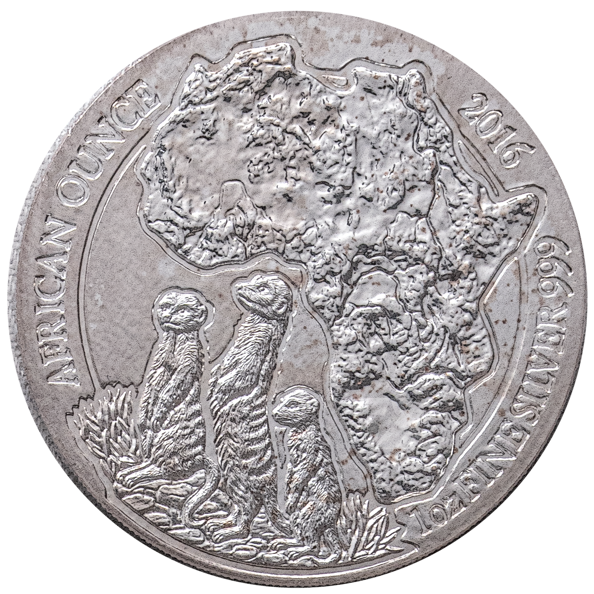 1 oz African Meerkat coin produced by renowned German Mint, B H Mayer.