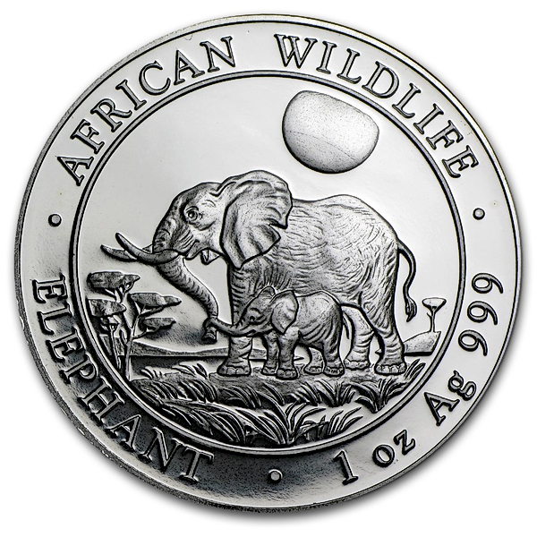 1 oz Somalian Silver Elephant minted by the Baverian State Mint in Germany.