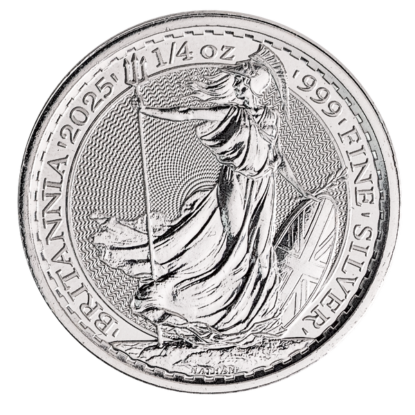 The 1/4 oz Silver Britannia coin is a 99.9% pure silver bullion coin minted by Britain´s Royal Mint for 2025.