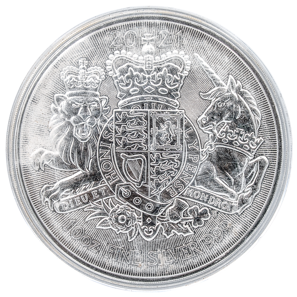 Buy 2021 Royal Arms silver coin - 10 ounces | 99.9% silver purity | From Britain’s Royal Mint | Featuring the Royal Arms, a symbol of strength and majesty