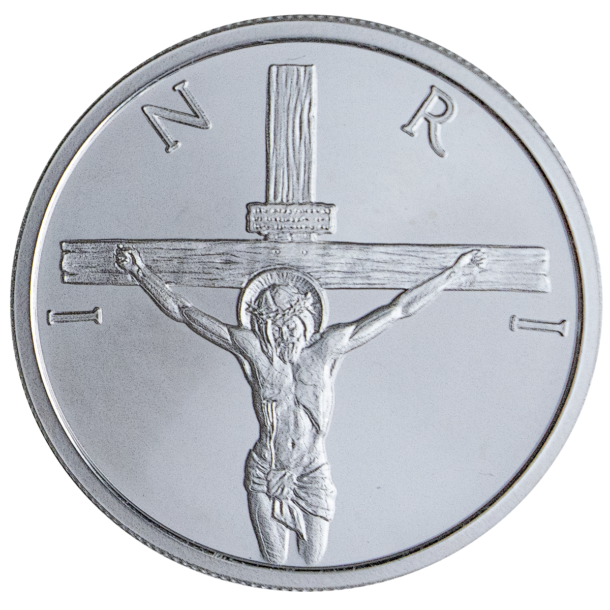 The Crucifixion of Christ Silver Round is a powerful and moving piece struck in .999 fine silver, depicting one of the most significant moments in Christian faith. Its detailed design captures the solemn image of Christ on the cross, symbolizing sacrifice, redemption, and hope. Combining artistic craftsmanship with spiritual meaning, this silver round is both a meaningful keepsake of faith and a valuable addition for collectors and investors alike.