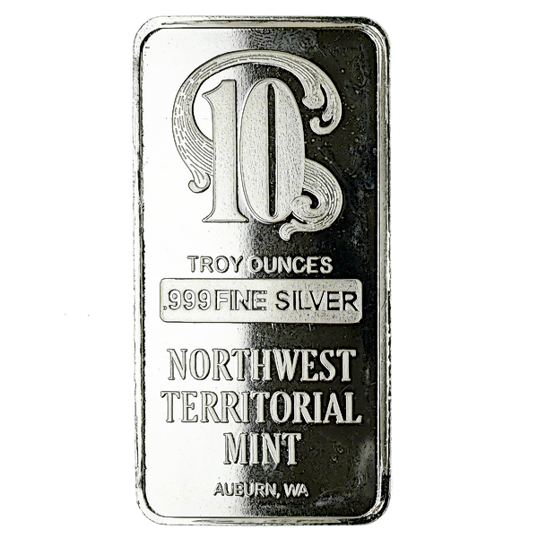 Northwest Territorial Mint 10 ounce Silver Bars are minted from .999 fine silver.