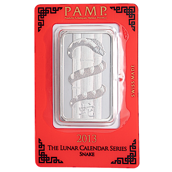 2013 1 oz PAMP Lunar Series "Year of the Snake" Silver Bullion Bar (Pre-Owned in Good Condition)