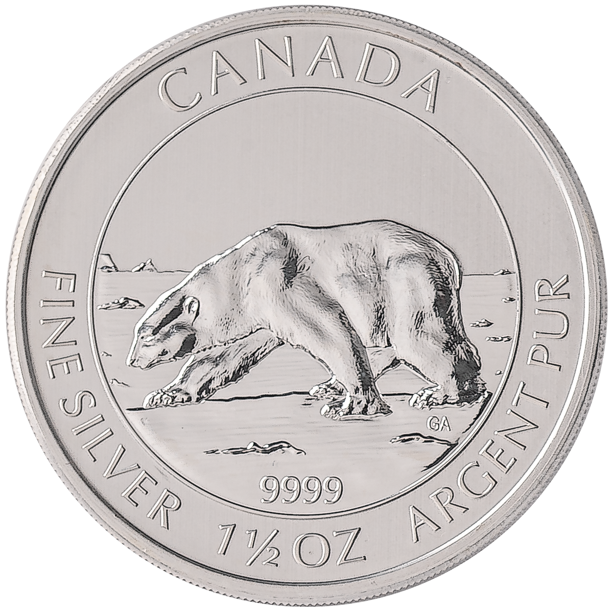 1.5 oz Silver Polar Bear produced by the Royal Canadian Mint.