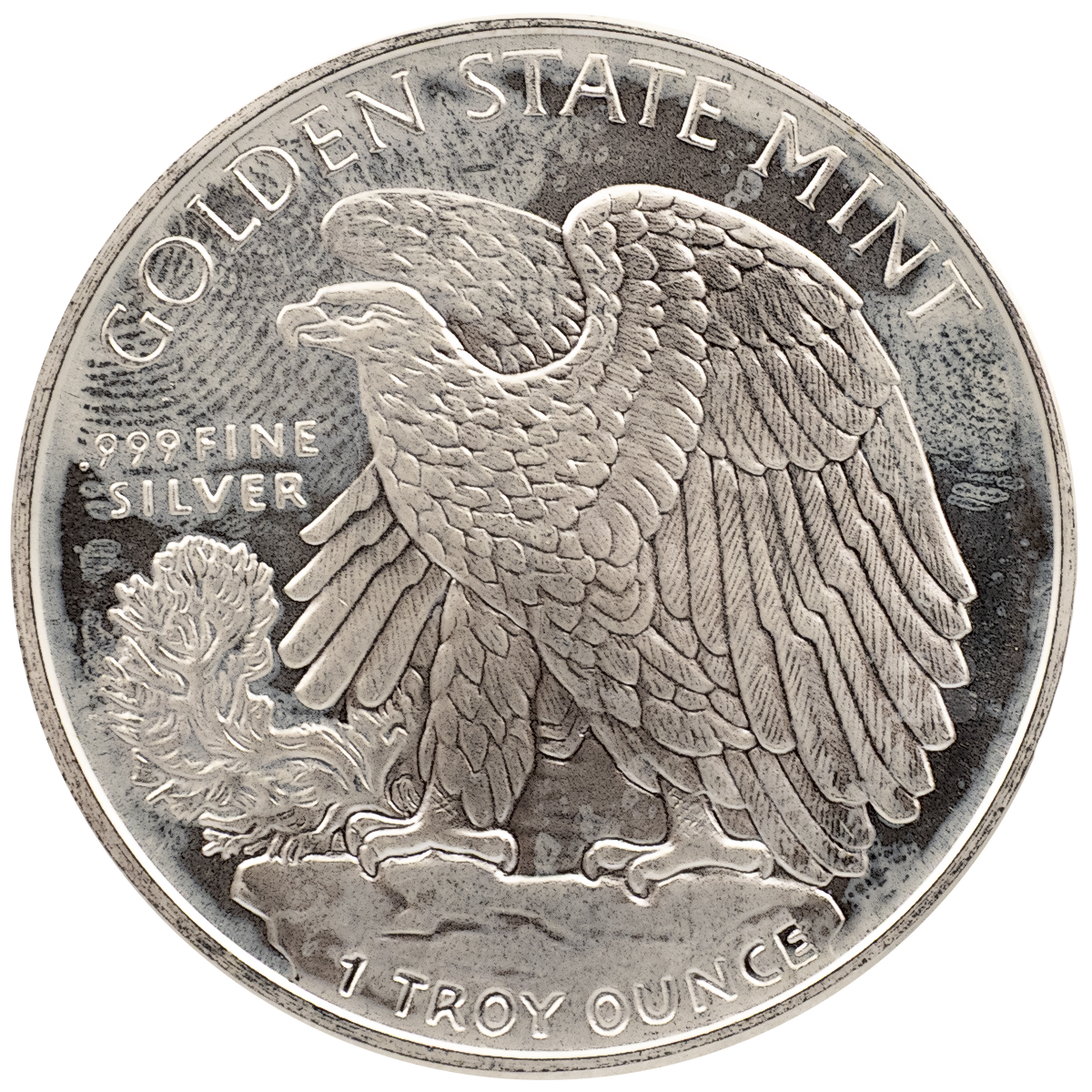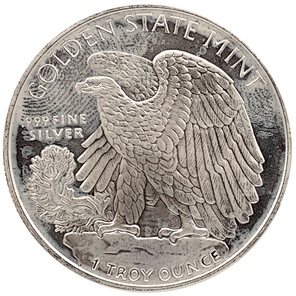 The obverse of the coin features the walking liberty whereas the reverse of the coin features an eagle perched on a mountain.