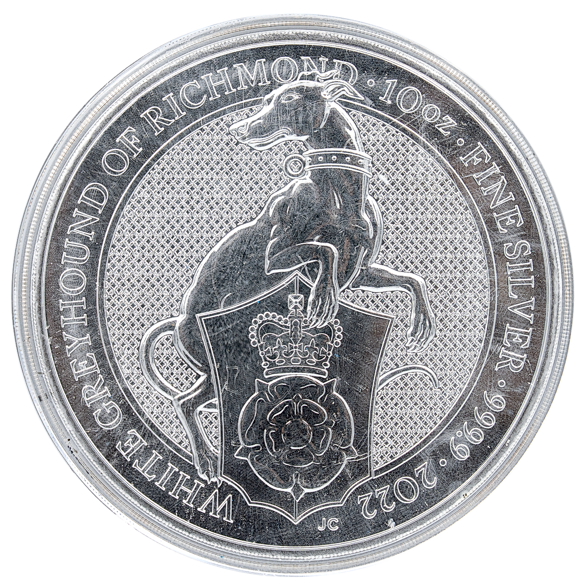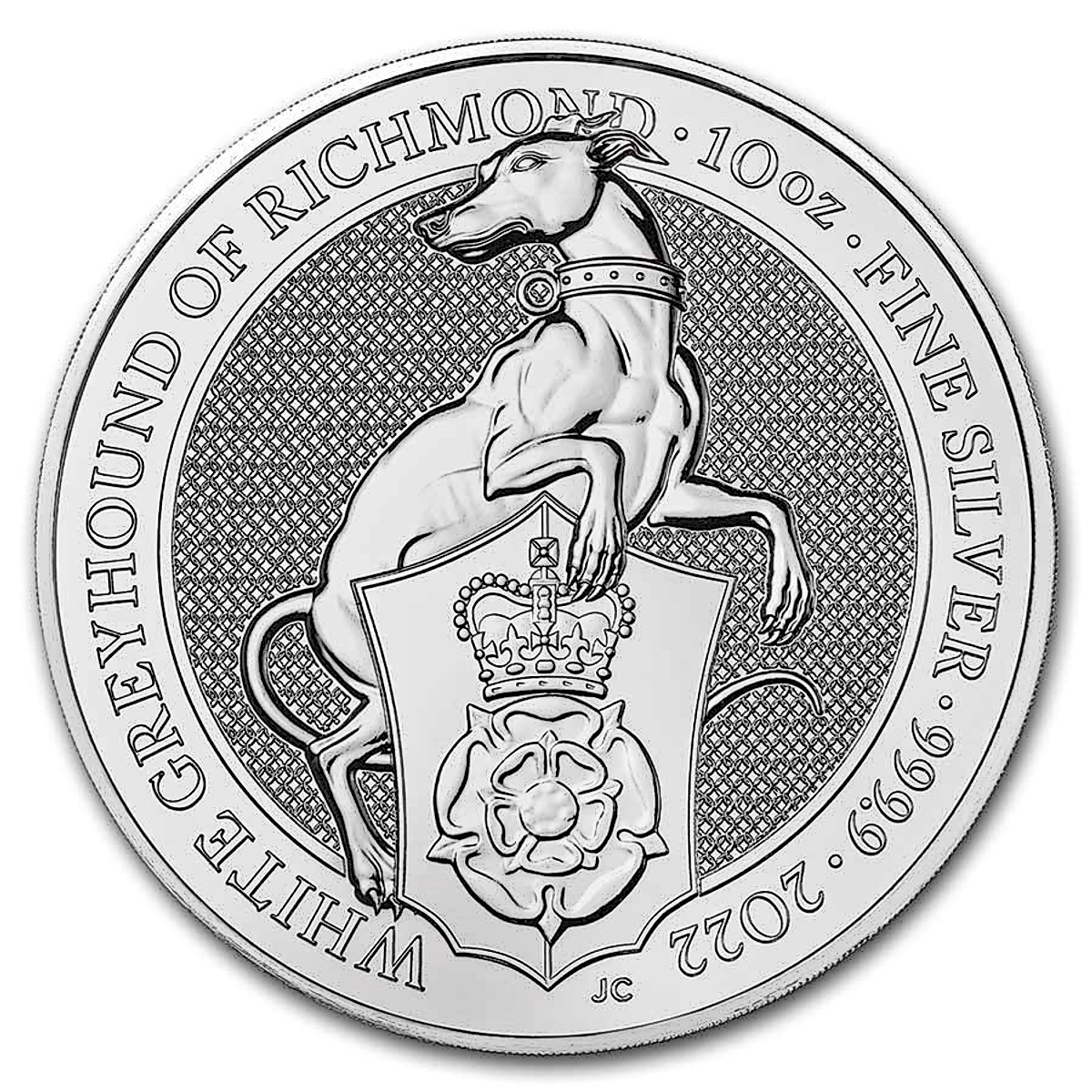 2022 10 oz United Kingdom Queen's Beast Series "White Greyhound of Richmond" Silver Bullion Coin