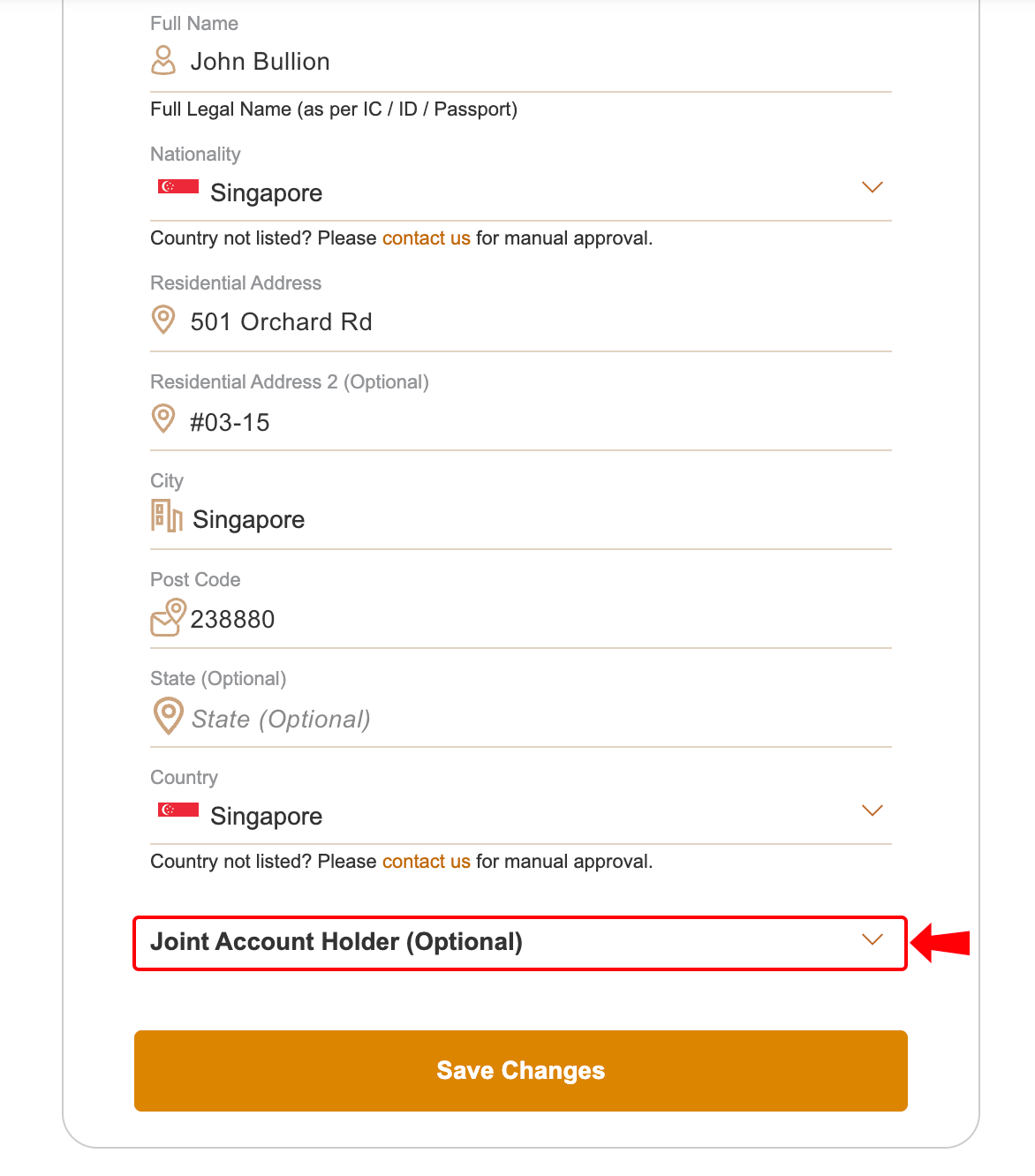 Scroll to the bottom of the page and click on the Joint Account Holder section to expand it.