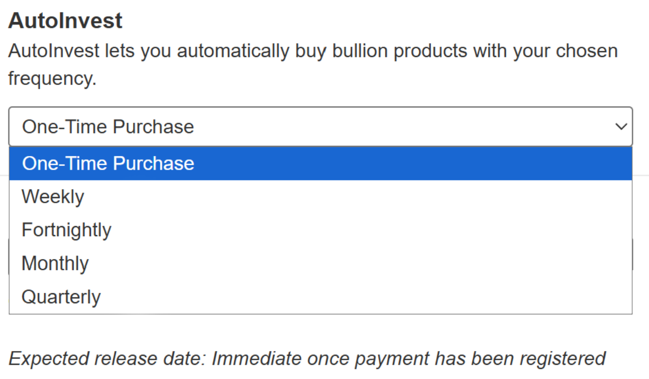BullionStar's AutoInvest feature that lets you set up recurring purchases of your favourite bullion products including the Bullion Savings Program (BSP). Instead of placing a one-time order, you can schedule automatic buys on a weekly, bi-weekly, monthly, or quarterly basis.