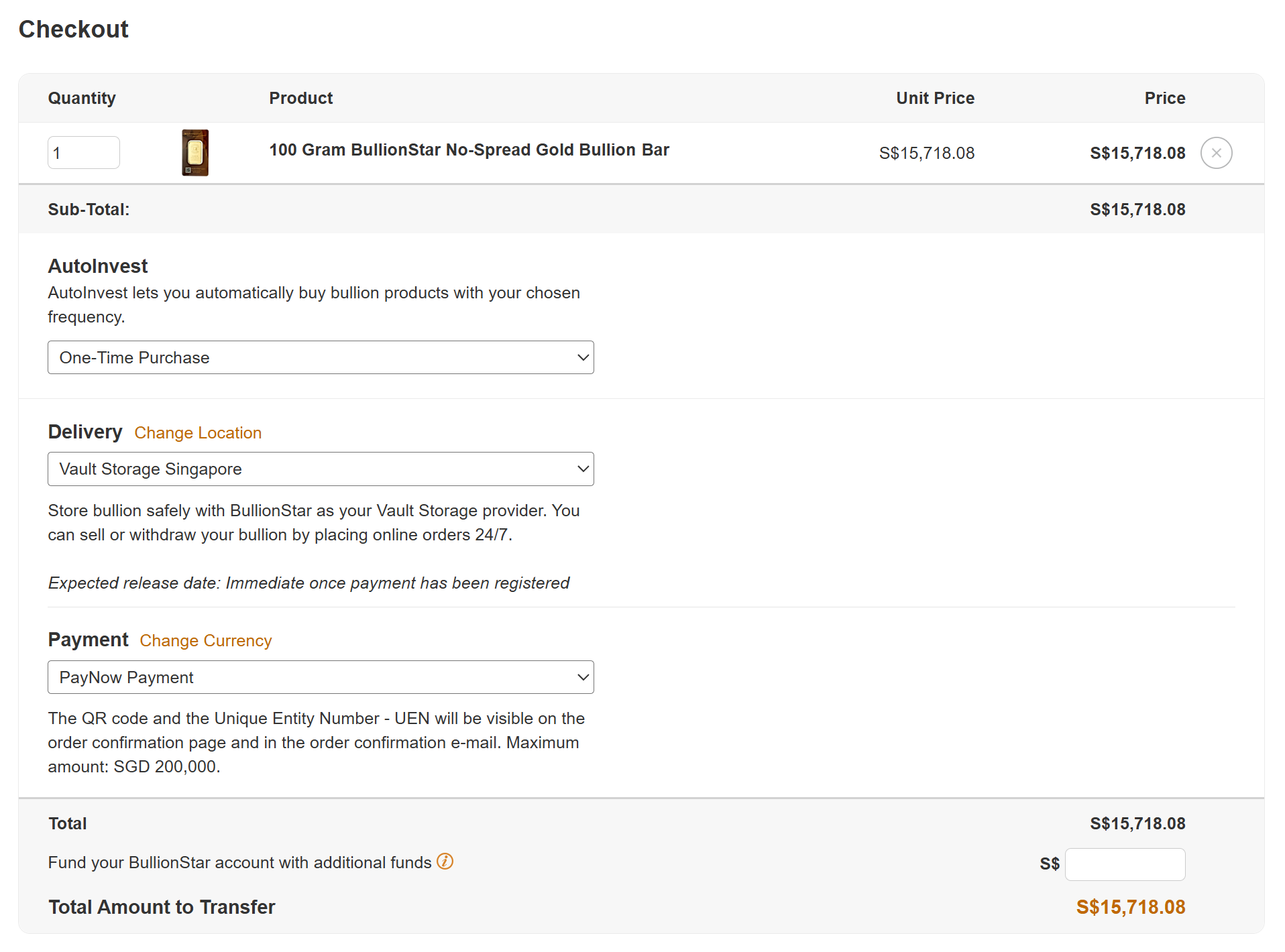 Note that if you have placed an order for the BullionStar Savings Program (BSP), the only delivery option available will be Vault Storage.